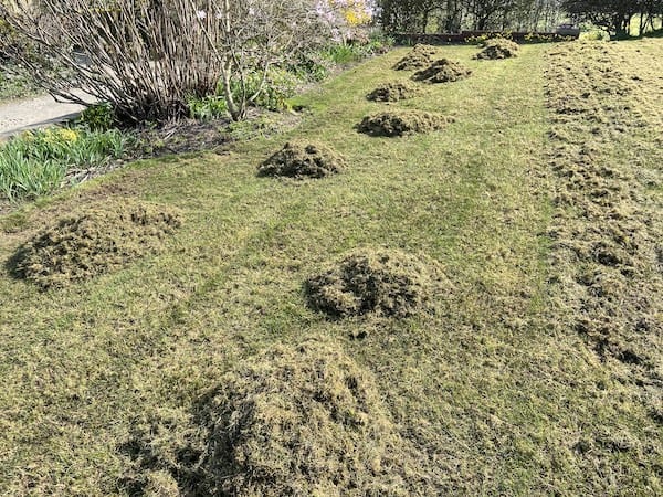 Below is after I have raked up a lot of the moss so you can see how much moss this scarifier has removed.