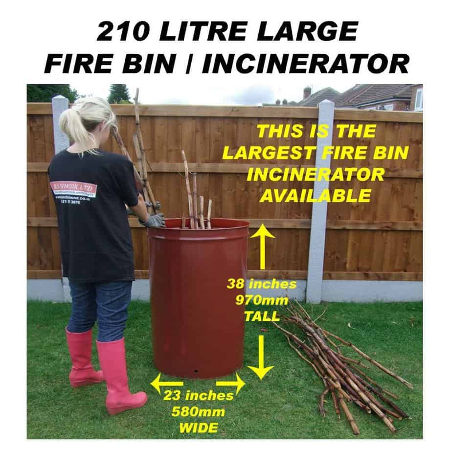 210 litre incinerator for burning large quantities of garden waste. Made from a old tomato barrel they made excellent incinerators. Come with 4 holes drilled.