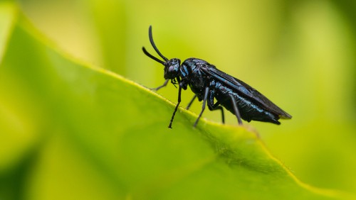The sawfly falls under the same group of insects as wasps, bees and ants. They have larvae that are very much like a caterpillar in general size and appearance, as you can see in the picture above. These larvae feed on the plants and once they have eaten everything that your plant has worked so hard to grow the adults turn into winged insects that can fly, like in the picture below.